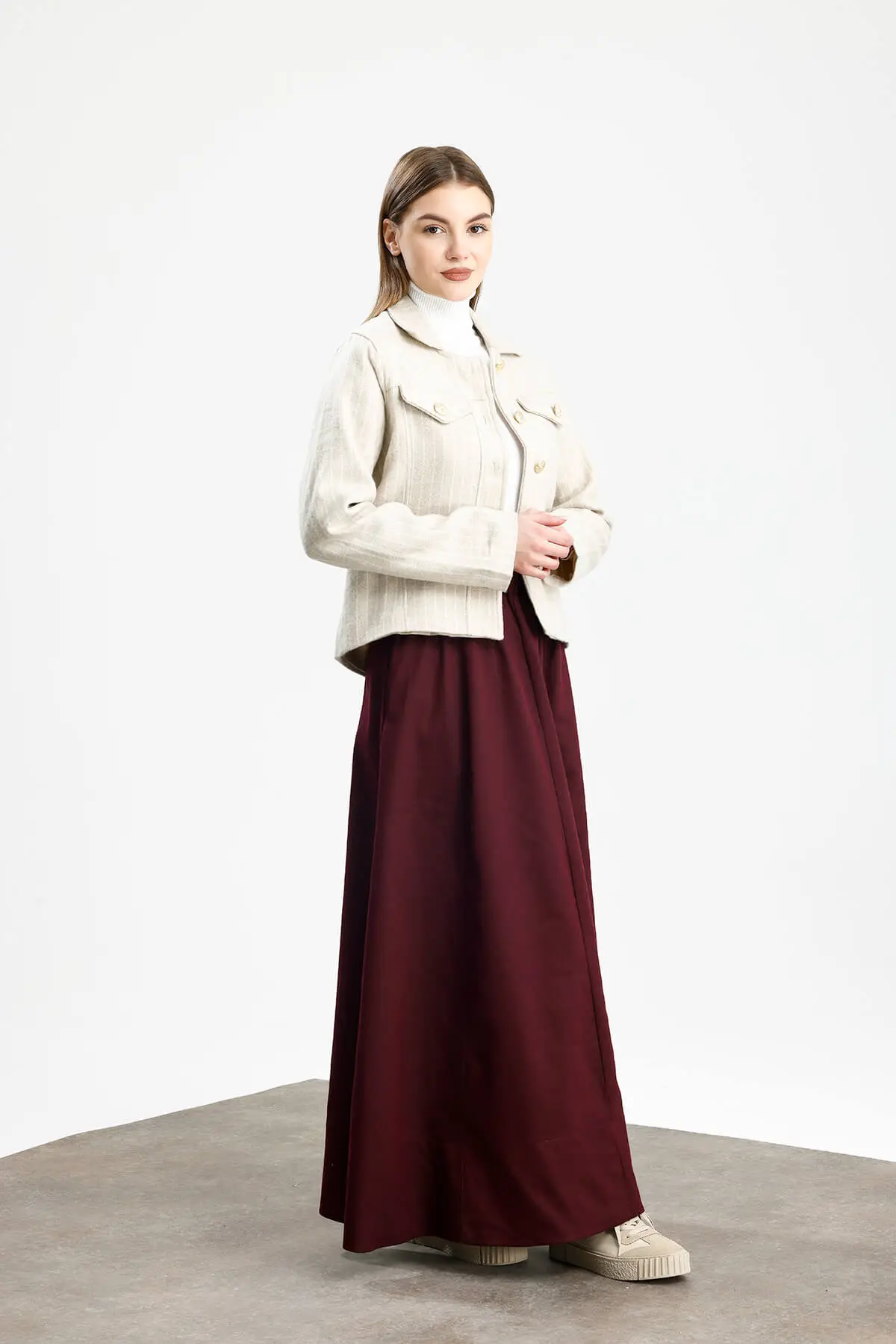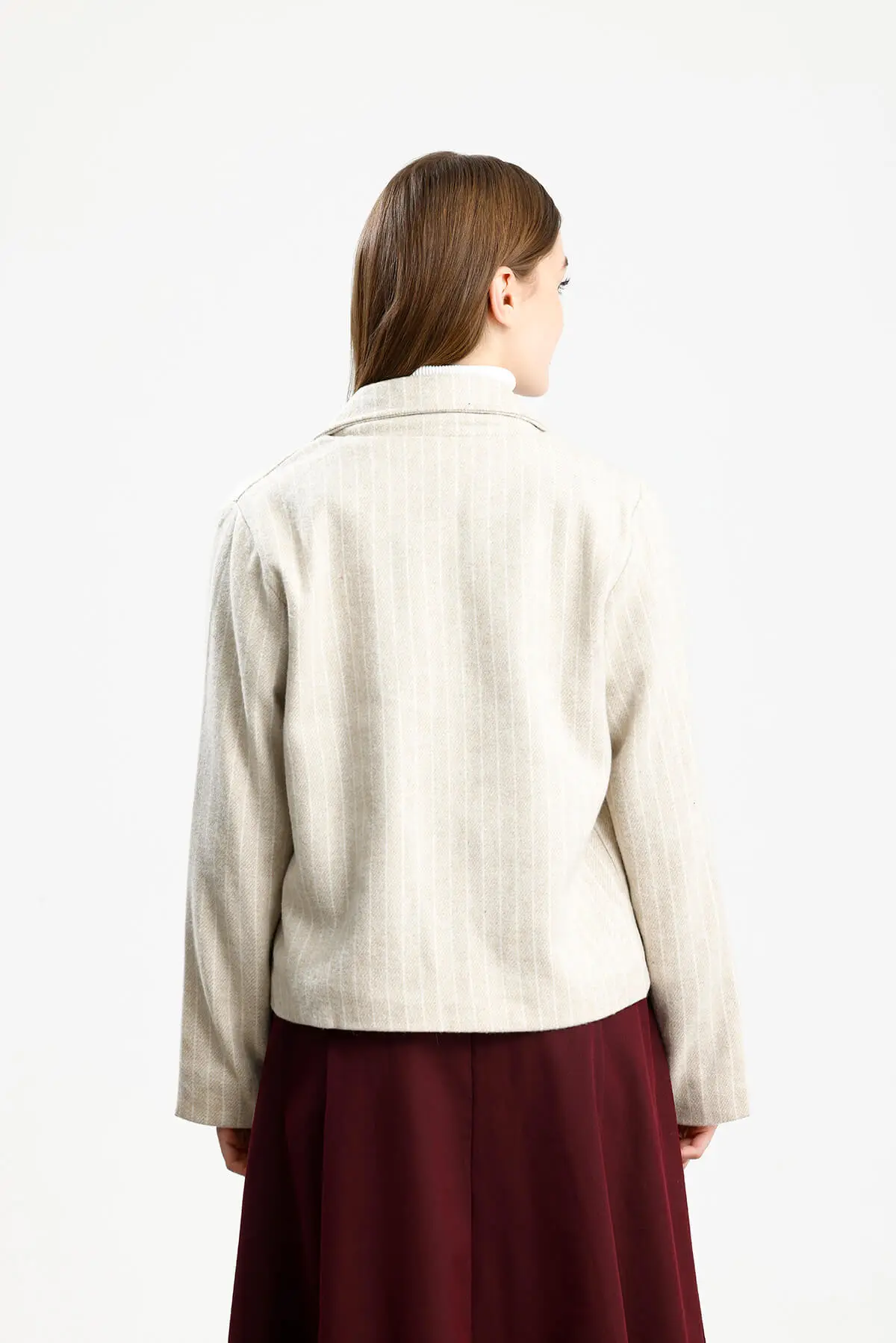 Astarlı, kapaklı cep görünümlü, metal düğmeli, düz manşet, yumuşak dokulu kaşe ceket.