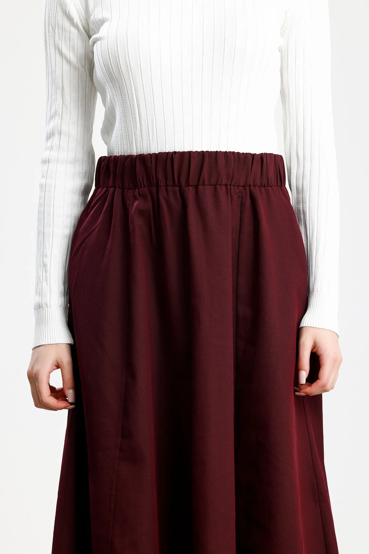 PARÇALI GENİŞ GABARDİN PAMUKLU ETEK BORDO